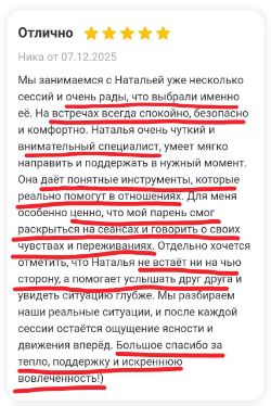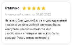 И если будет необходимость, решение о личной терапии можно принять параллельно, работая с семейным/парным психологом.